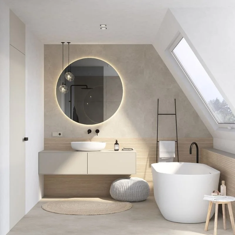 Ein modernes Badezimmer zeichnet sich durch schlichte, klare Formen aus. Große Fliesen, geradlinige Möbel und zurückhaltende Farben sorgen für Ruhe und Eleganz. Offene Grundrisse mit viel Licht lassen den Raum größer und hochwertiger wirken.
